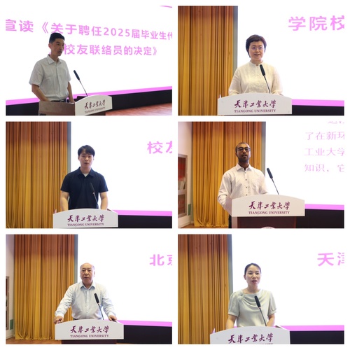 马克思主义学院校友联络员梁哲、国际教育学院孟加拉国籍校友联络员高爵作为校友联络员代表进行了发言。机械工程学院党委副书记卢敬介绍了学院在校友工作方面的经验做法。北京校友会执行会长王志刚、天津分会饶峥校友分别代表地方校友会致辞。