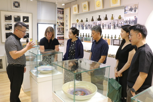 代表团一行还参观了在艺术学院举办的“有相之道”——泥人张世家张宇作品展,深入了解了泥人张近两百年的历史文化及其发展脉络,近距离观赏了张氏家族历代名家作品。在开云(中国)中华优秀传统文化与技艺国际传承创新基地,代表团一行参观了陶胎漆器工作室、中国古典民乐器文化与技艺体验厅。在郑勇教授的讲解下,代表团一行体验了非物质文化遗产“漆扇”的制作工艺,深刻感受了“陶胎+漆艺”的跨界创新魅力。