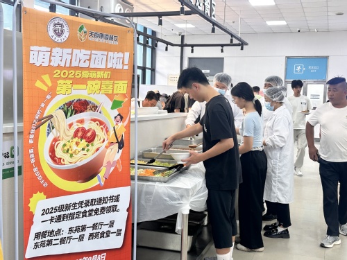 晌午时分,后勤管理处为新生奉上一碗碗热气腾腾的天津传统打卤面—“喜面”。俗话说“上车饺子下车面”,这碗浸润着家的温暖的见面礼,连同常态化供应的“生日面”,一同开启了学子们“青春对味”的全新旅程。
